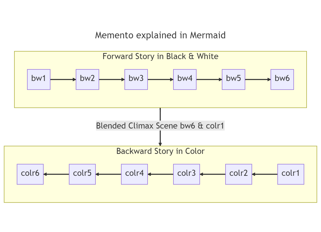 Mermaid Memento Posted Apr 7, 2023 Updated May 26, 2024 By Aris Tan 1 min readPlaying with Mermaid Diagramming and charting tool to explain the flow of the movie MementoMarkdown file DIAGRAM mermaid This post is licensed under CC BY 4.0 by the author. Share